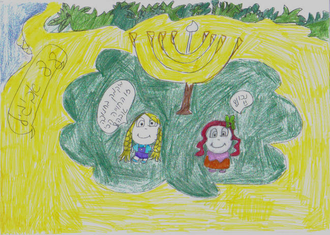 הציויר הוא על זה שבחנוכה אני מבלה הרבא זמן במיקמק ולכבוד זה אני מדליקה חנוכיה בקרחת ביער.