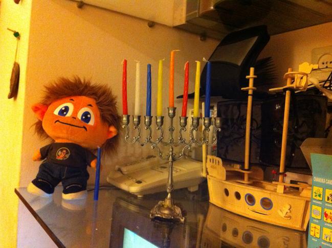 מקס מדליק נרות של חנוכה ומברך עליהם