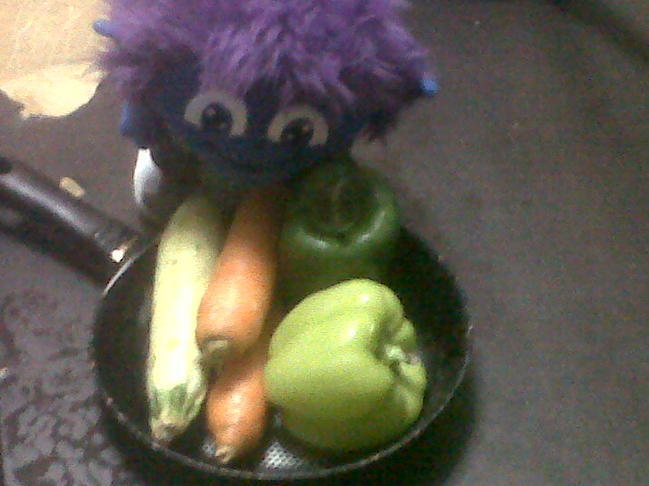 גימבו מבשל ירקות במחבת