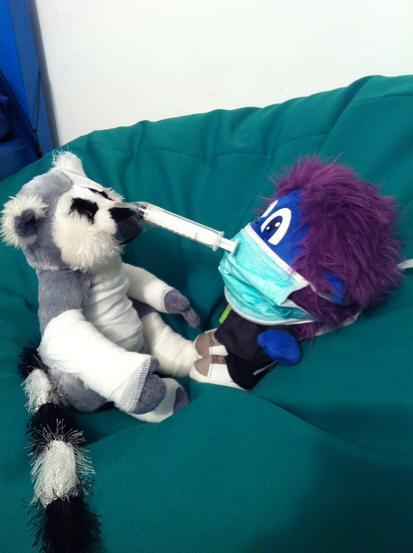 ג'מבו החליט לעבוד בתור רופא והוא מטפל בחולה.