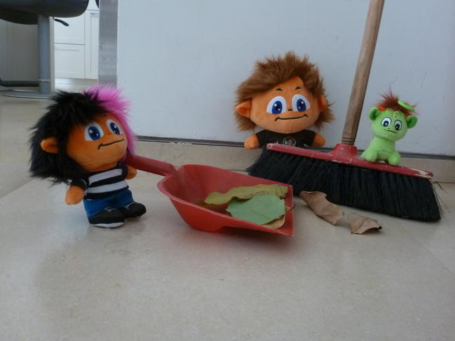 אלויס למה אתה מפריע למקס ולזואי לנקות את הבית אתה יודע אך זה קשה להםאולי אתה תנקה את הריצפה |