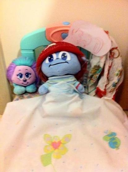 הבובה שלי זואי חולה והיא שוכבת במיטה עם חום והצטננות